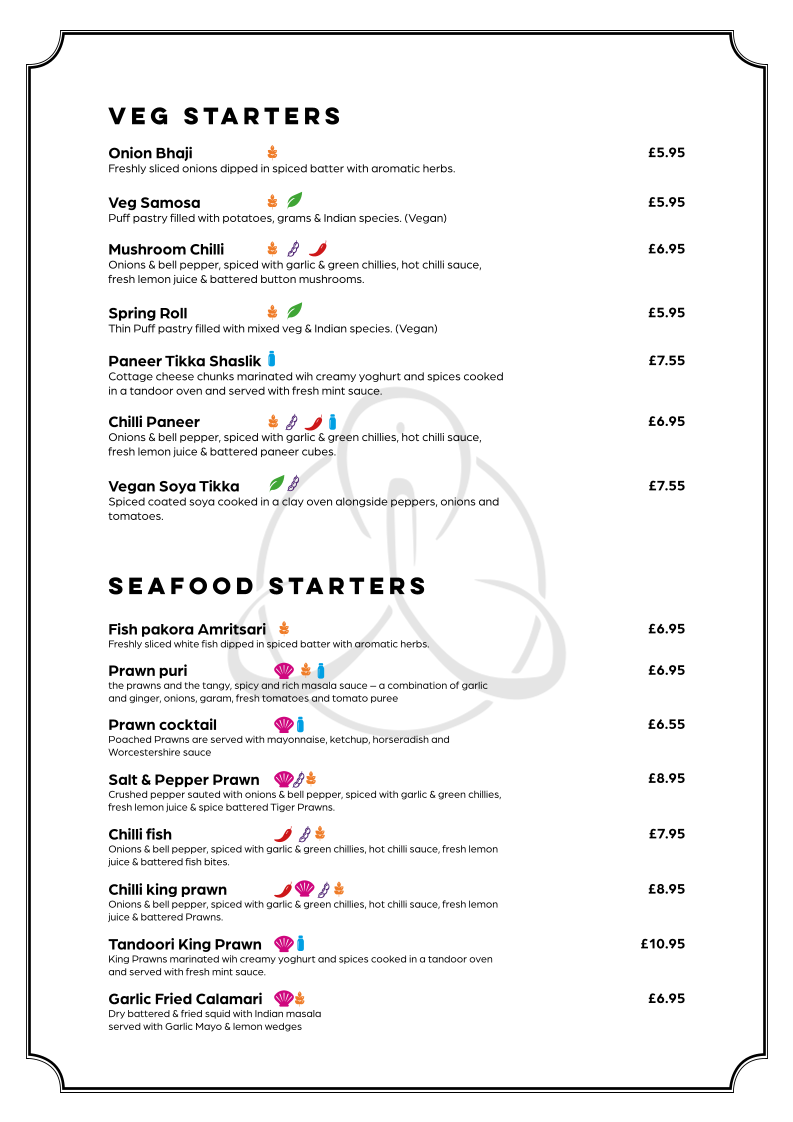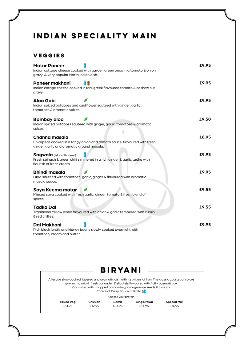 Chef’s take on the classic Goan dish cooked with potatoes in a spicy onion, vinegar and tomato sauce. Super hot